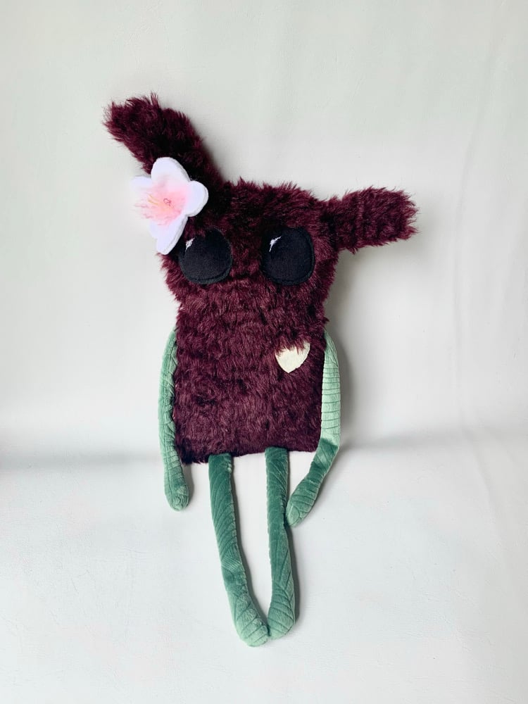 Made from faux fur and minky. Stuffed and lightly weighted with micro glass beads. 23β from ear tips to toes. 14β body.