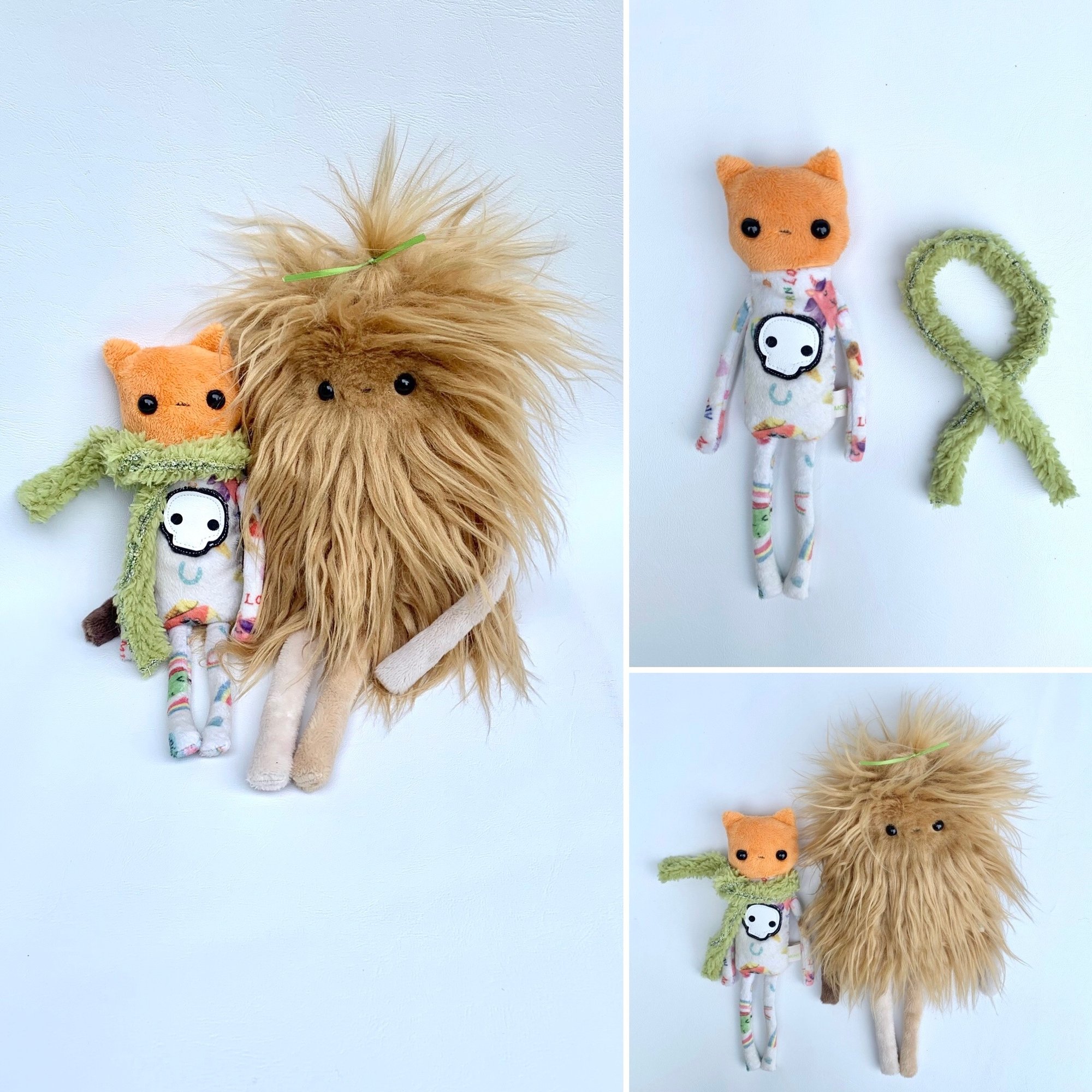 Pumpkin the Cat is made from minky. Stuffed and weighted with micro glass beads. Plastic safety eyes. 9.5” tall.